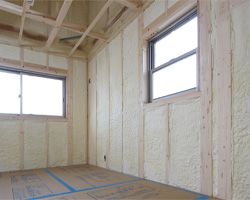 発泡ウレタンの断熱は、高性能発泡ウレタンを吹き付けて施工する方法です。